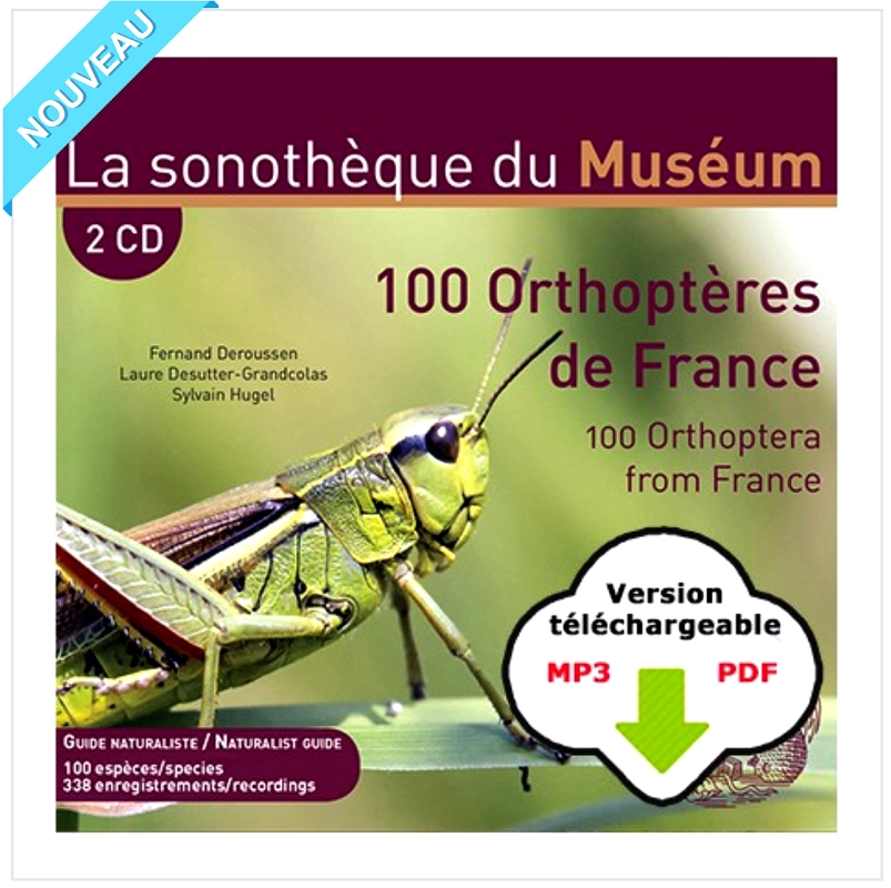 Voici la version dématérialisée du double CD, paru en 2020, entièrement consacré aux émissions sonores de 100 orthoptères (sauterelles, courtilières, grillons et criquets) de France. Avec ses 338 enregistrements et son livret en PDF, voilà un ouvrage de référence, utile sur le terrain, pouvant être installé sur la carte mémoire d'un téléphone (prix : 24,90 €).